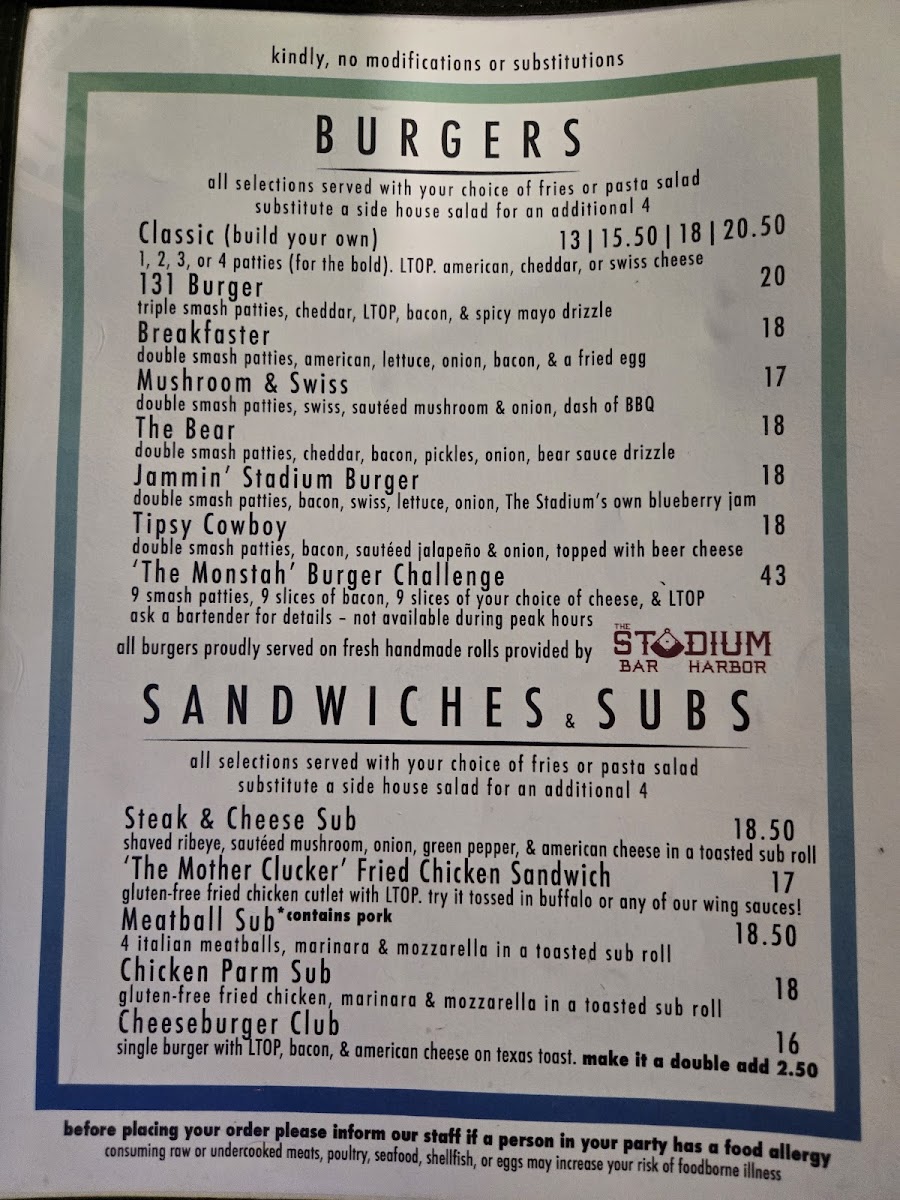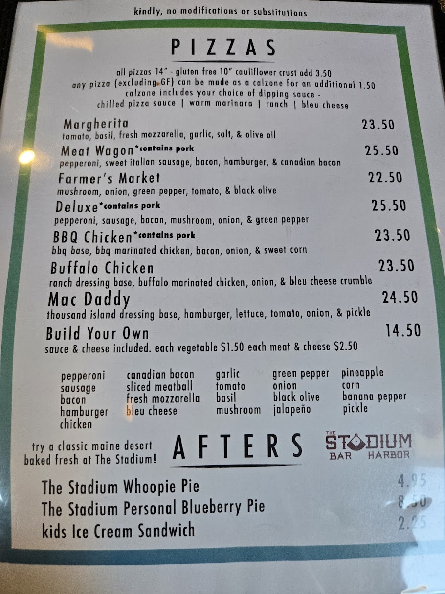 Standout items include thoughtfully crafted pizzas like the BBQ Chicken or Margarita, alongside filling sandwiches such as the Meatball Sub and the Tipsy Cowboy Burger. Light snacks like Soft Pretzels or Buffalo Chicken Dip invite sharing, while the Build Your Own burger option lets you customize to your liking. Salads and sides, from crisp Caesar to Maine Potato Fries, balance the menu for those seeking something a little lighter without missing out on flavor.